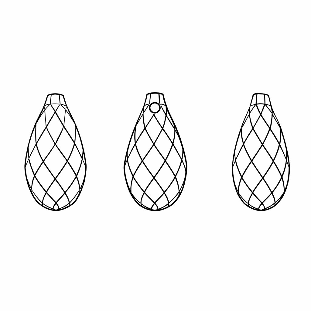 Teardrop-shaped stone in Crystal AB color with dimensions of 13.0 x 6.5 mm. It features a through hole in the upper, narrower part, allowing it to be used as a hanging element. The clear base with an AB coating creates an iridescent effect, reflecting multiple colors depending on the angle of light. Suitable for jewelry making, decorative elements, and creative projects where elegant form and light effects are desired.