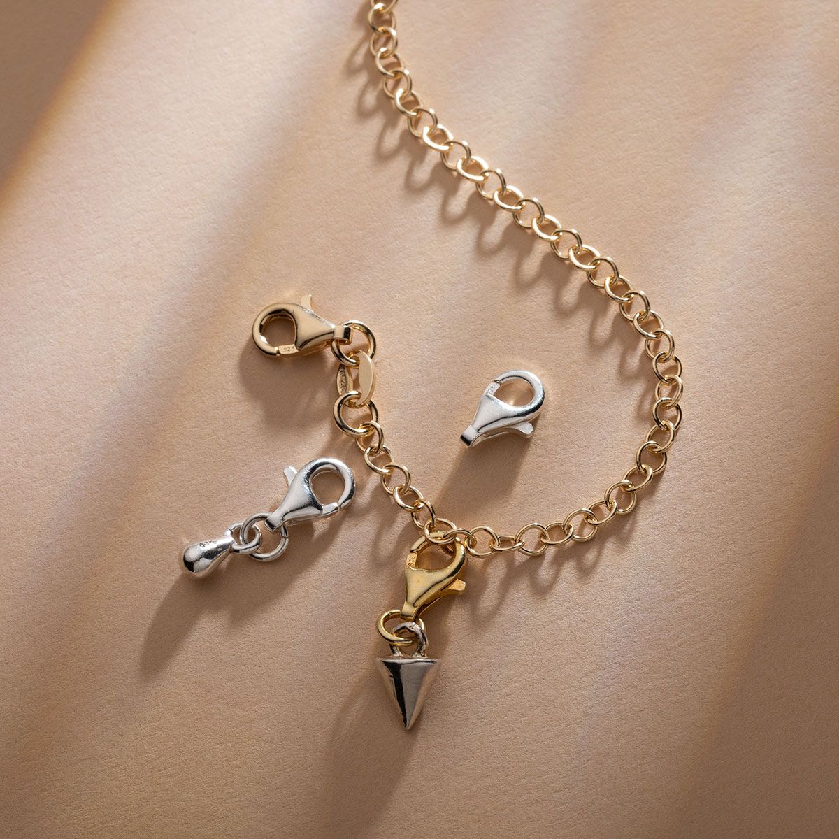 The 8 mm model pairs beautifully with jewelry featuring medium to thick chain weaves. For a cohesive look, the clasp can be combined with an open jump ring in the same silver color.