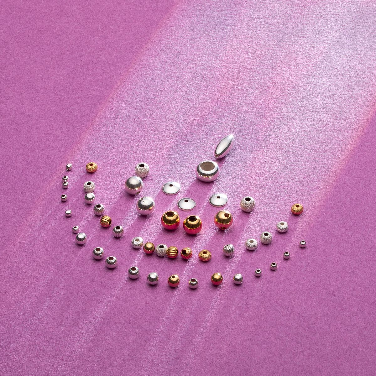Additionally, the beads can be plated with gold, rhodium, or platinum to match the look to the character of the entire jewelry collection.