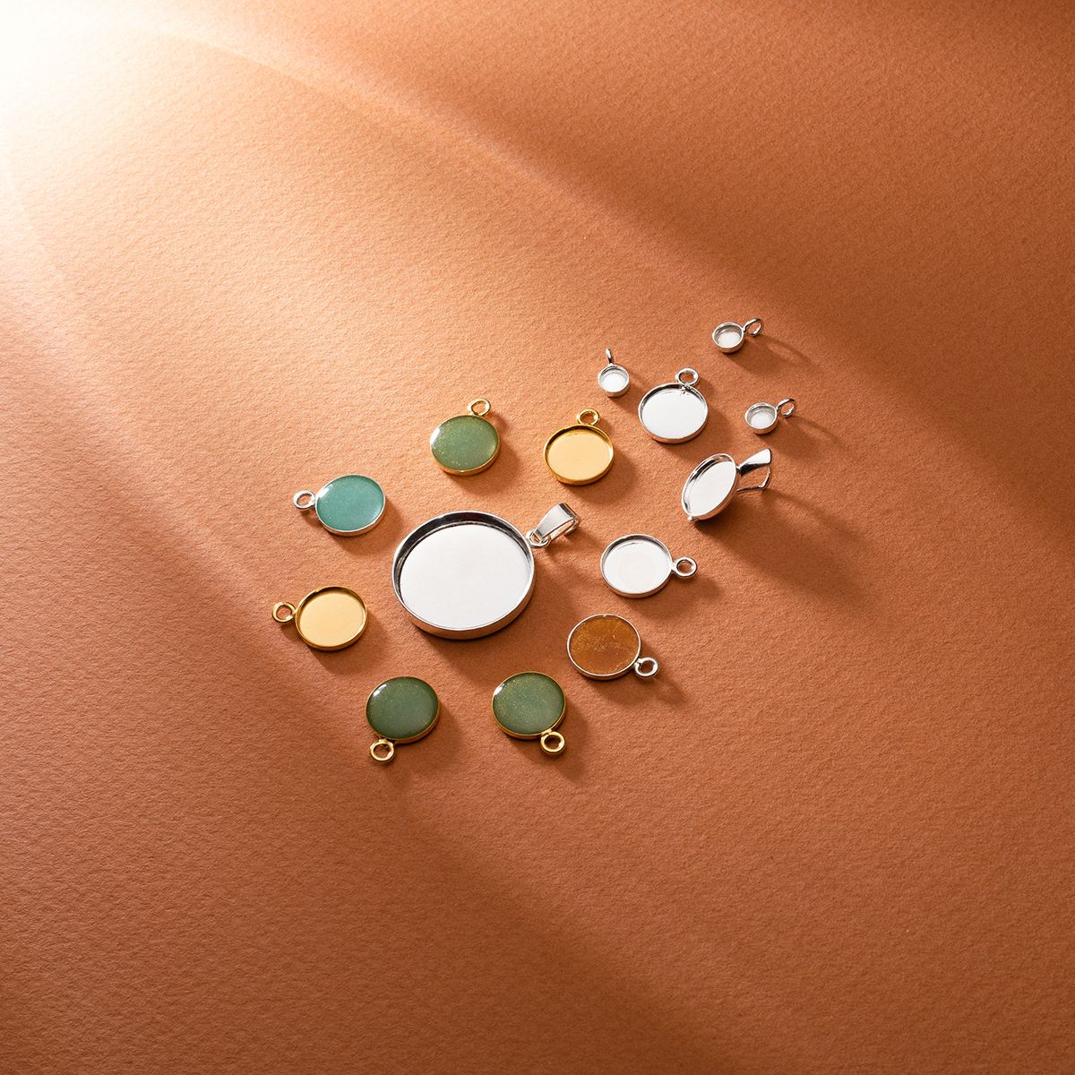 The round resin pendant is perfect for necklaces, and with the right arrangement, can also be used for earrings. It is equipped with a solid bail for easy attachment to a chain or cord. Made of 925 sterling silver, it can be additionally plated with gold, rhodium, or platinum to match other jewelry elements.