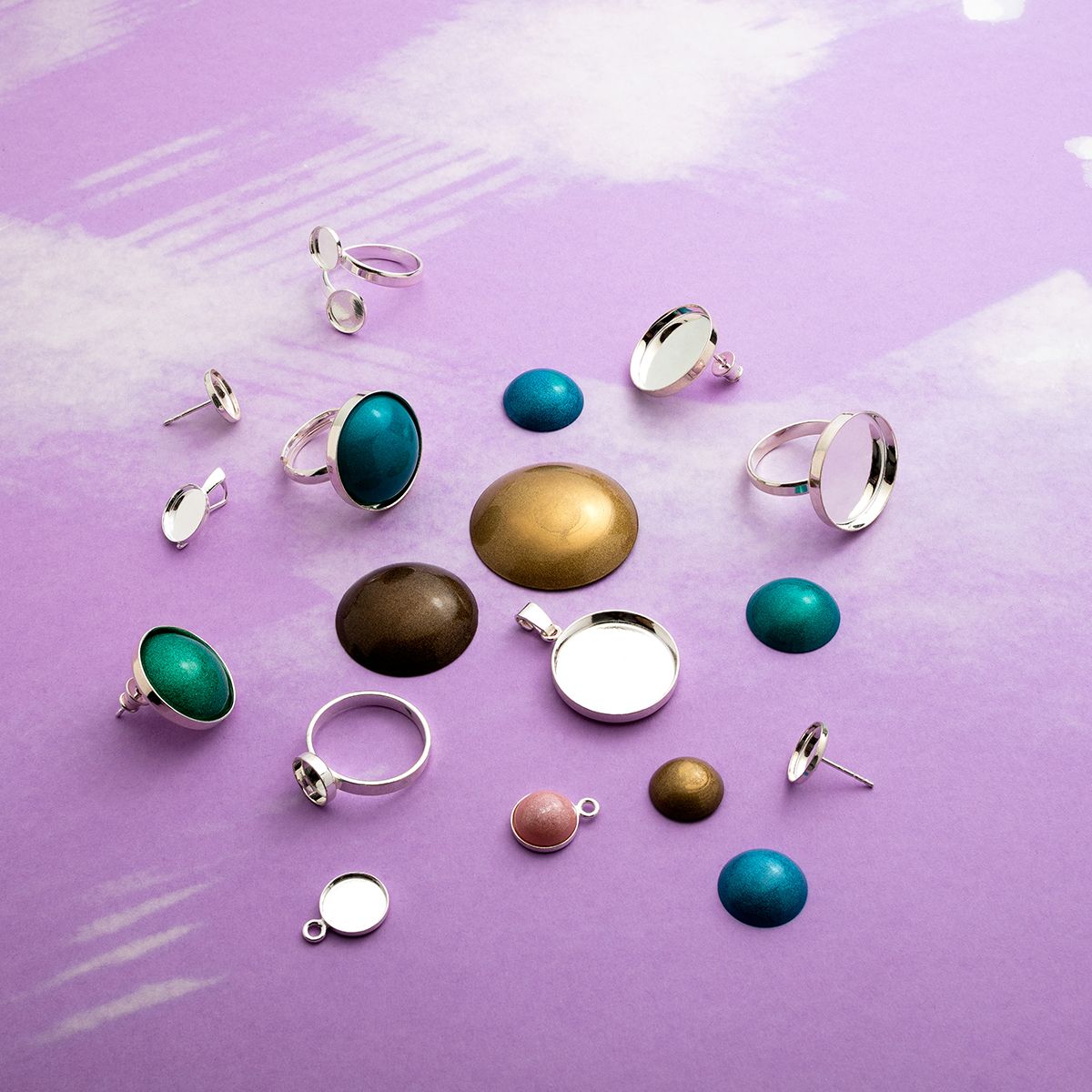 The cup can also be used as a silver base for cabochons — simply glue in a flat-backed stone to achieve a durable and elegant effect. With its minimalist form, this jewelry finding beautifully highlights the resin filling while remaining a subtle background for the composition.