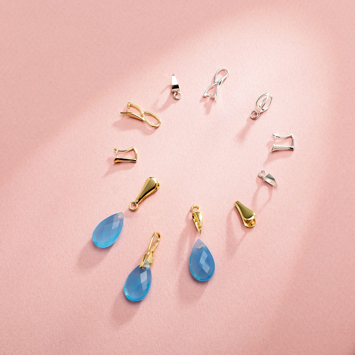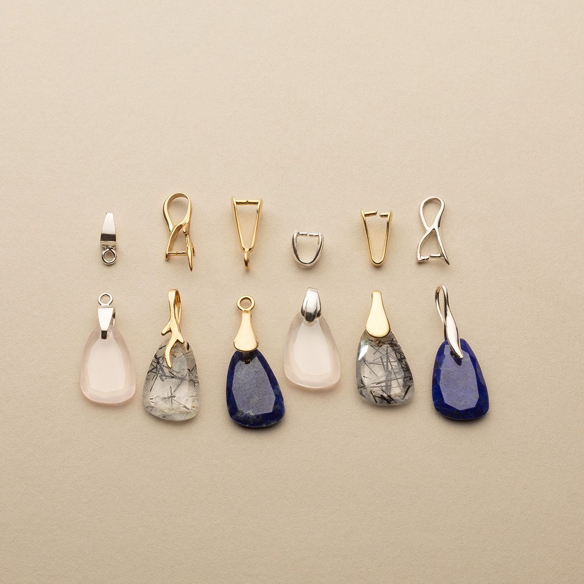 The silver bail has a gently contoured shape that subtly enhances the character of the suspended ornament, giving it an elegant, professional look. Its minimalist form makes it a great match for both modern and classic jewelry designs. The pendant bail can also be used as a mounting element in earrings or pendants with stones of various shapes.
