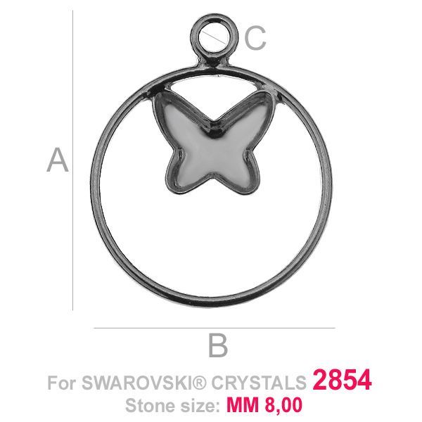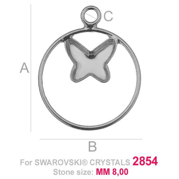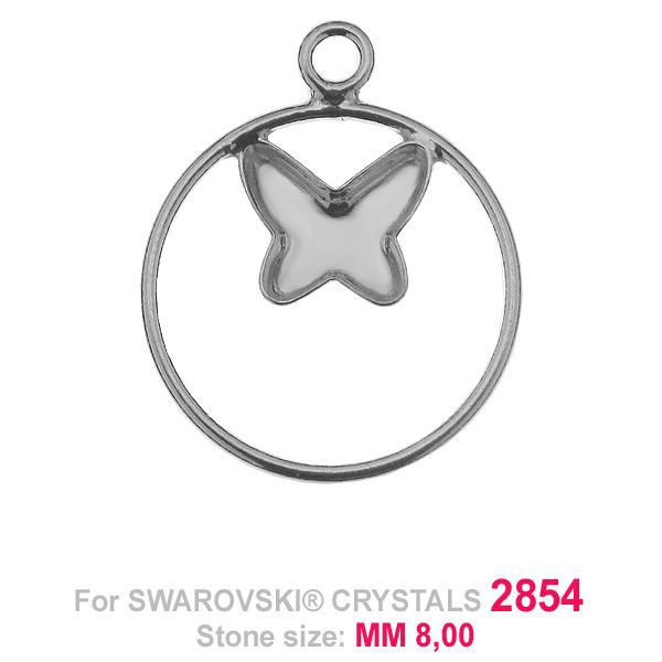 Pendant - base for Butterfly Flat Back in circle 2854 8 MM, sterling silver 925