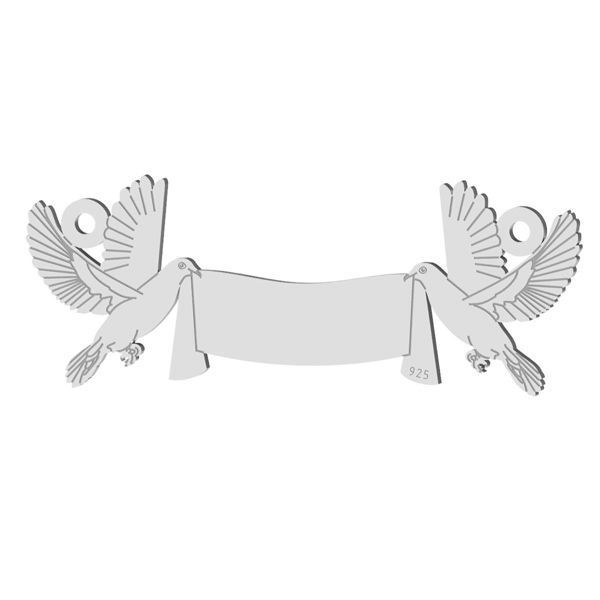 Wedding pigeons pendant connector, sterling silver 925, LK-1366 - 0,50