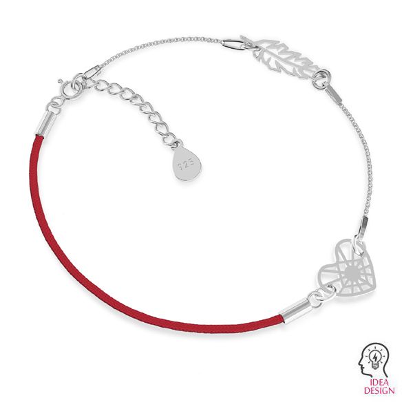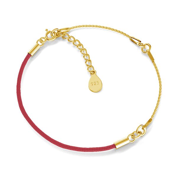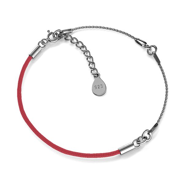 Base for bracelets, red cord and chain, sterling silver 925, S-BRACELET 15