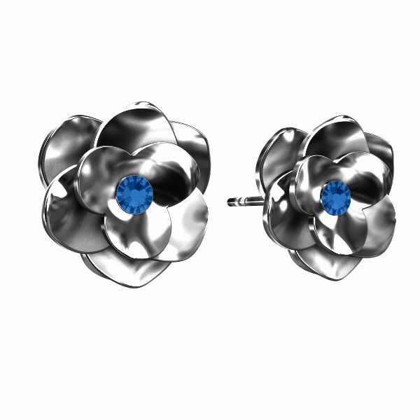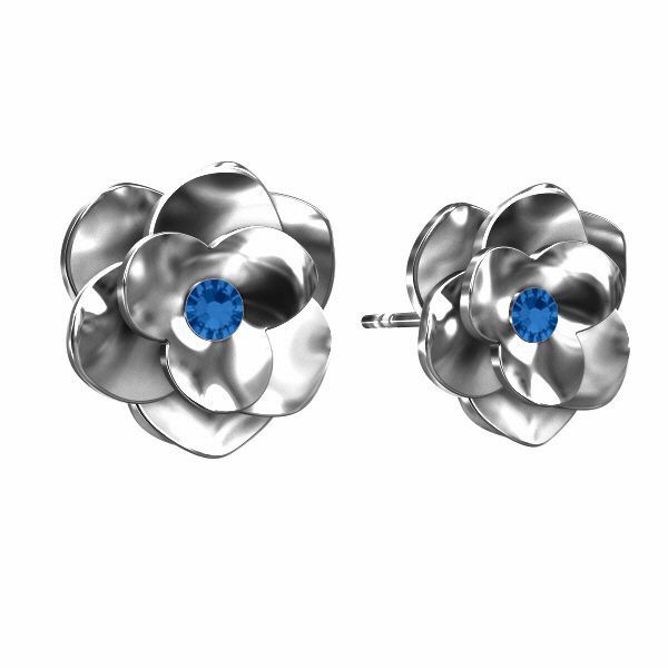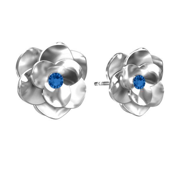Stud earring - rose with CAPRI BLUE crystal, sterling silver 925