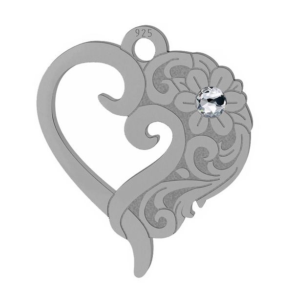 Heart pendant with SW crystal, sterling silver 925