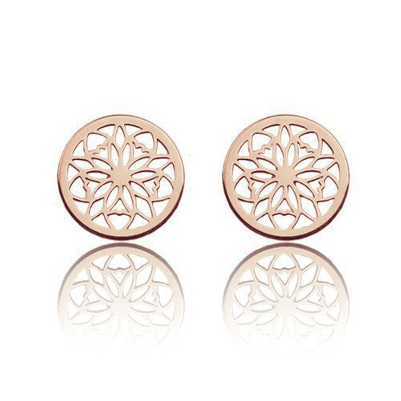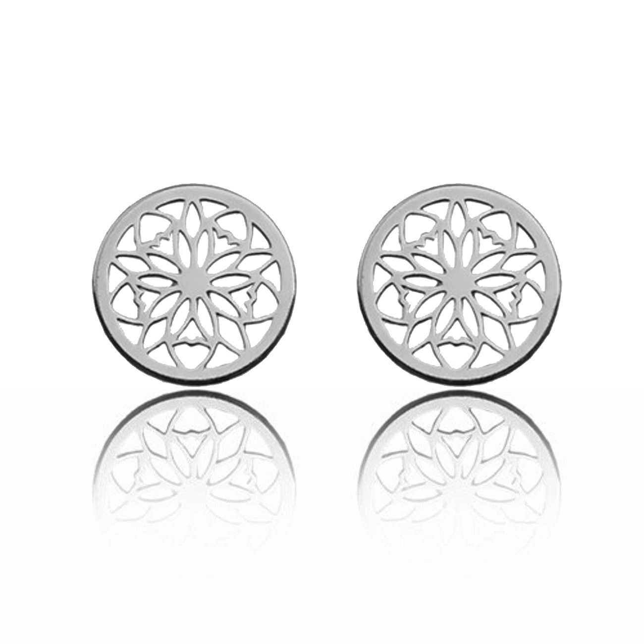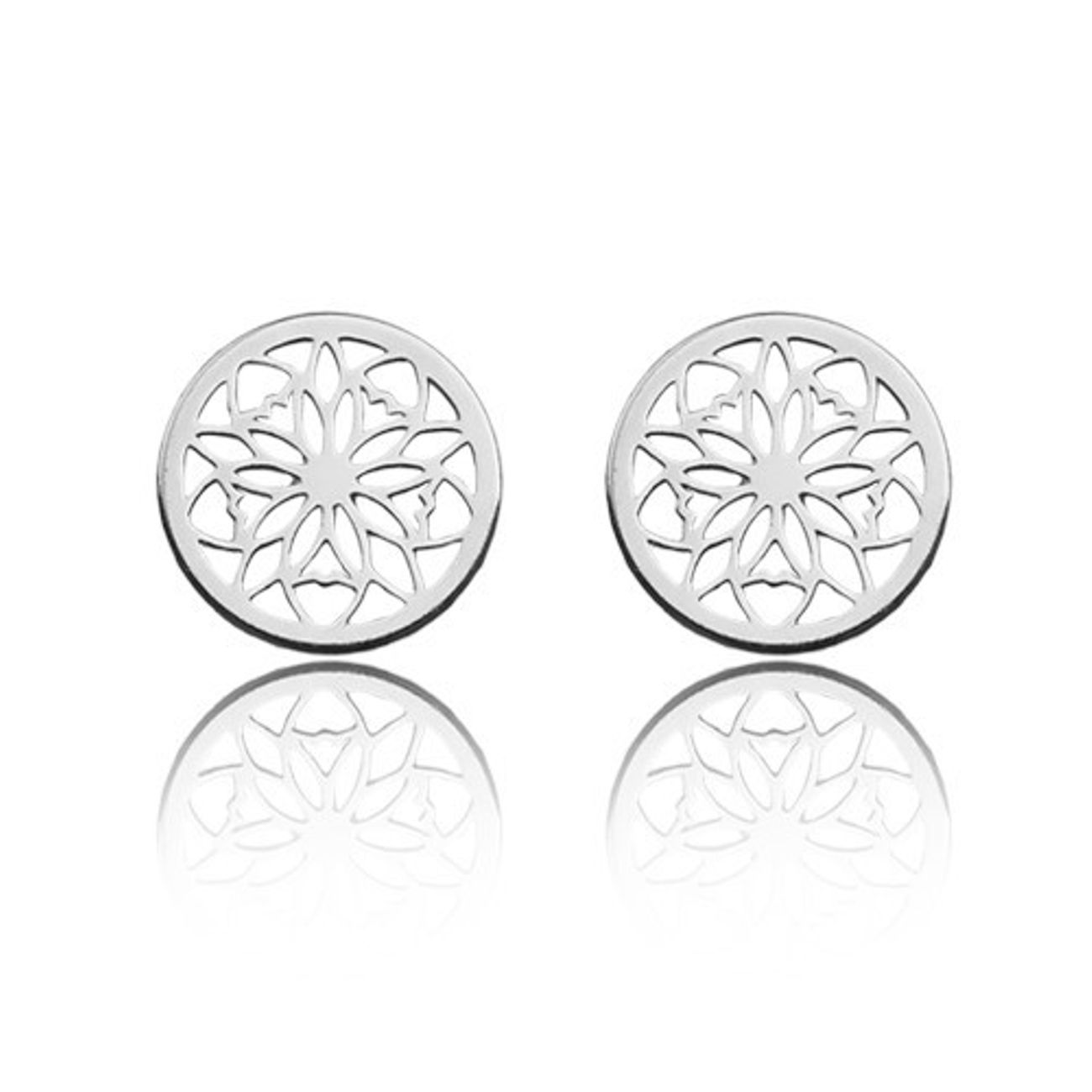 Stud earrings with an openwork rosette motif, combining subtlety with elegant design. The delicate, symmetrical pattern gives them a light and timeless character. Made of 925 sterling silver with precise finishing. Perfect for everyday wear and special occasions, ideal for minimalist styles.