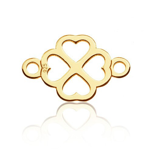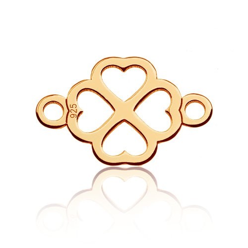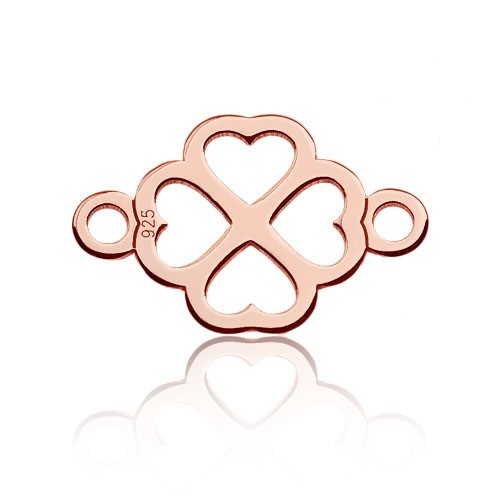 Connector pendant - four-leaf clover with hearts, sterling silver AG 925