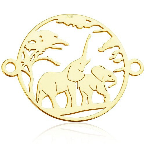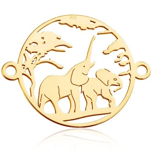 Openwork connector pendant - African elephants, sterling silver AG 925