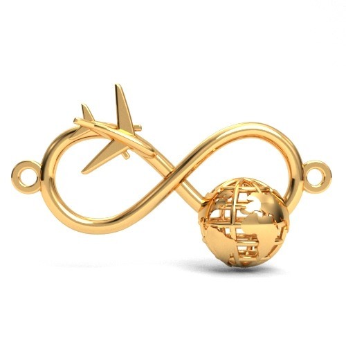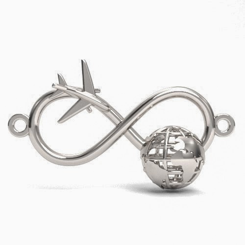 Connector pendant - infinity with globe and airplane, sterling silver AG 925
