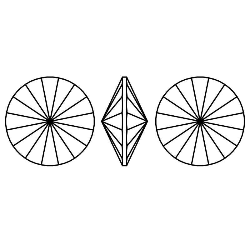 Round Rivoli-type stone in Olivine F color with a diameter of 10.54 mm. It features a classic, symmetrical shape and an intense green shade with a clear shine. Used in jewelry, decorative elements, and creative projects where an elegant form and saturated color are important.