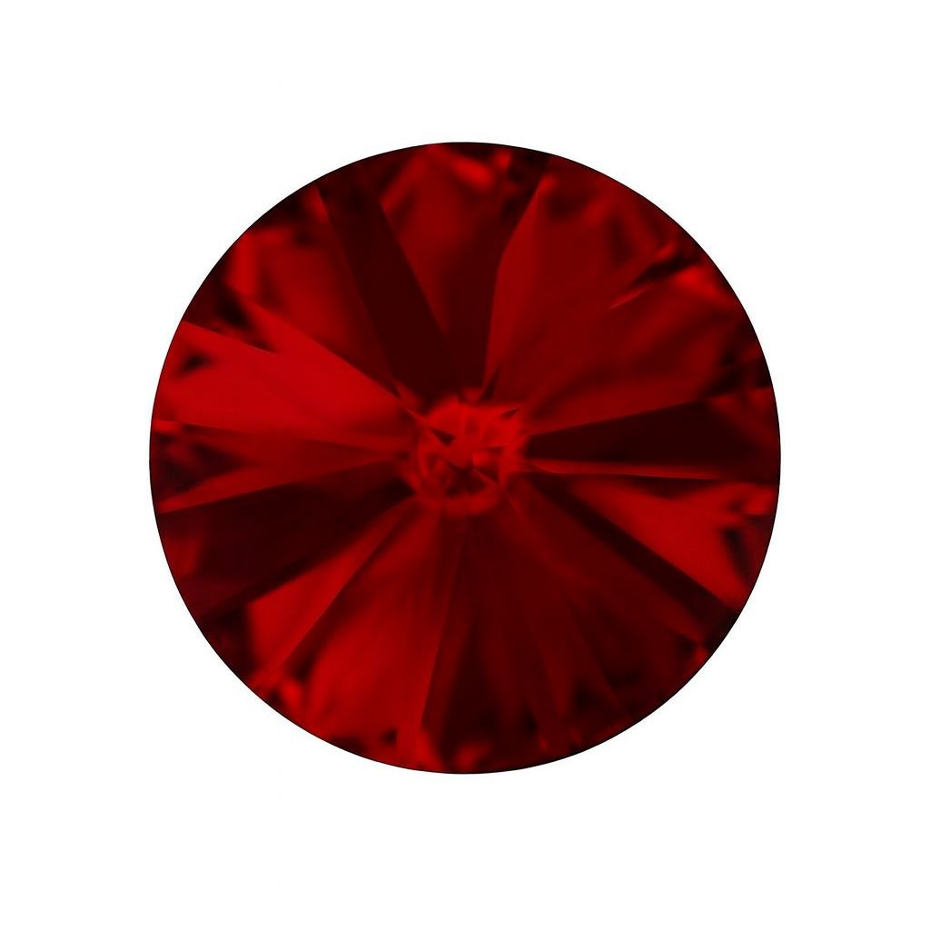 Round Rivoli stone with a diameter of 10.75 mm in an intense Siam red colour. The radiating faceted structure enhances brilliance and highlights the deep, saturated red tone. Ideal for jewellery settings, artistic designs and decorative projects requiring a strong colour accent. The symmetrical cut works well in both single settings and complex compositions.