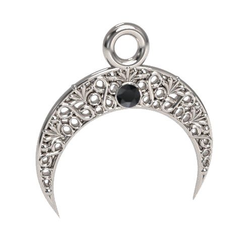 Filigree pendant - moon with Jet stone, sterling silver AG 925