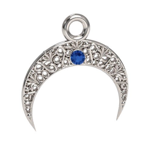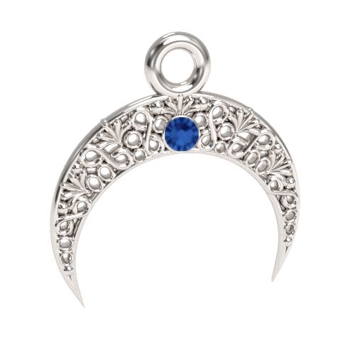 Filigree pendant - moon with Capri Blue stone Capri Blue, sterling silver AG 925
