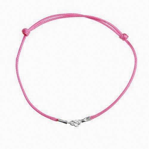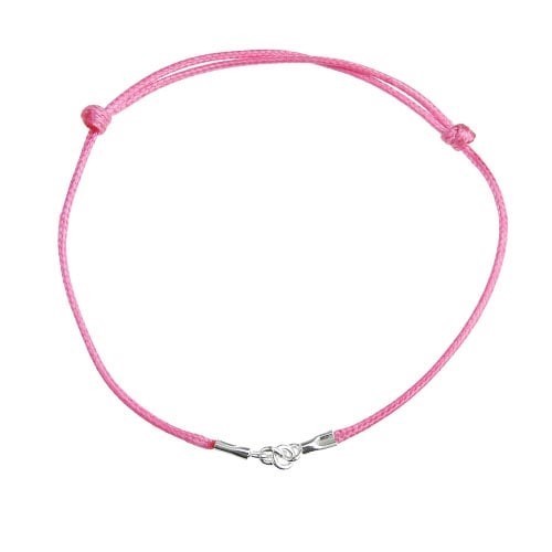 Waxed cord bracelet - adjustable - pink, sterling silver AG 925