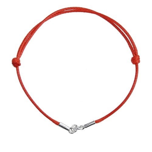 Waxed cord bracelet - adjustable - red, sterling silver AG 925