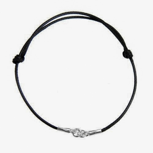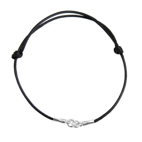 Waxed cord bracelet - adjustable - black, sterling silver AG 925