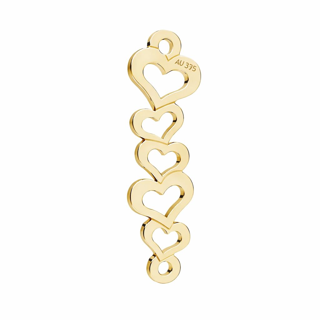 The openwork connector with a heart motif, made of AU 375 gold, is a lightweight and precise jewelry component. Its repeating heart form suits both modern and classic jewelry collections.