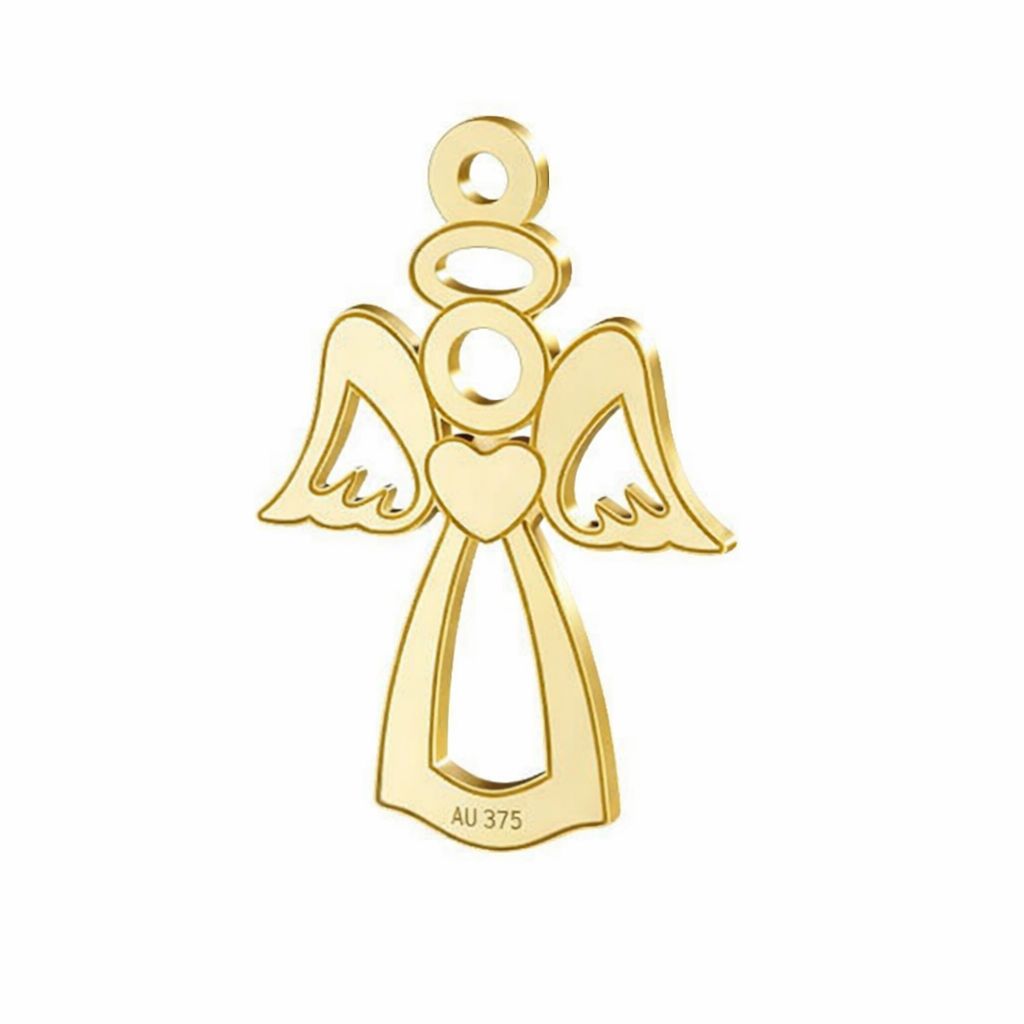 The openwork angel pendant made of AU 375 gold is a decorative jewelry component with a light and subtle form. The symbol of protection and hope suits commemorative and sentimental jewelry designs.