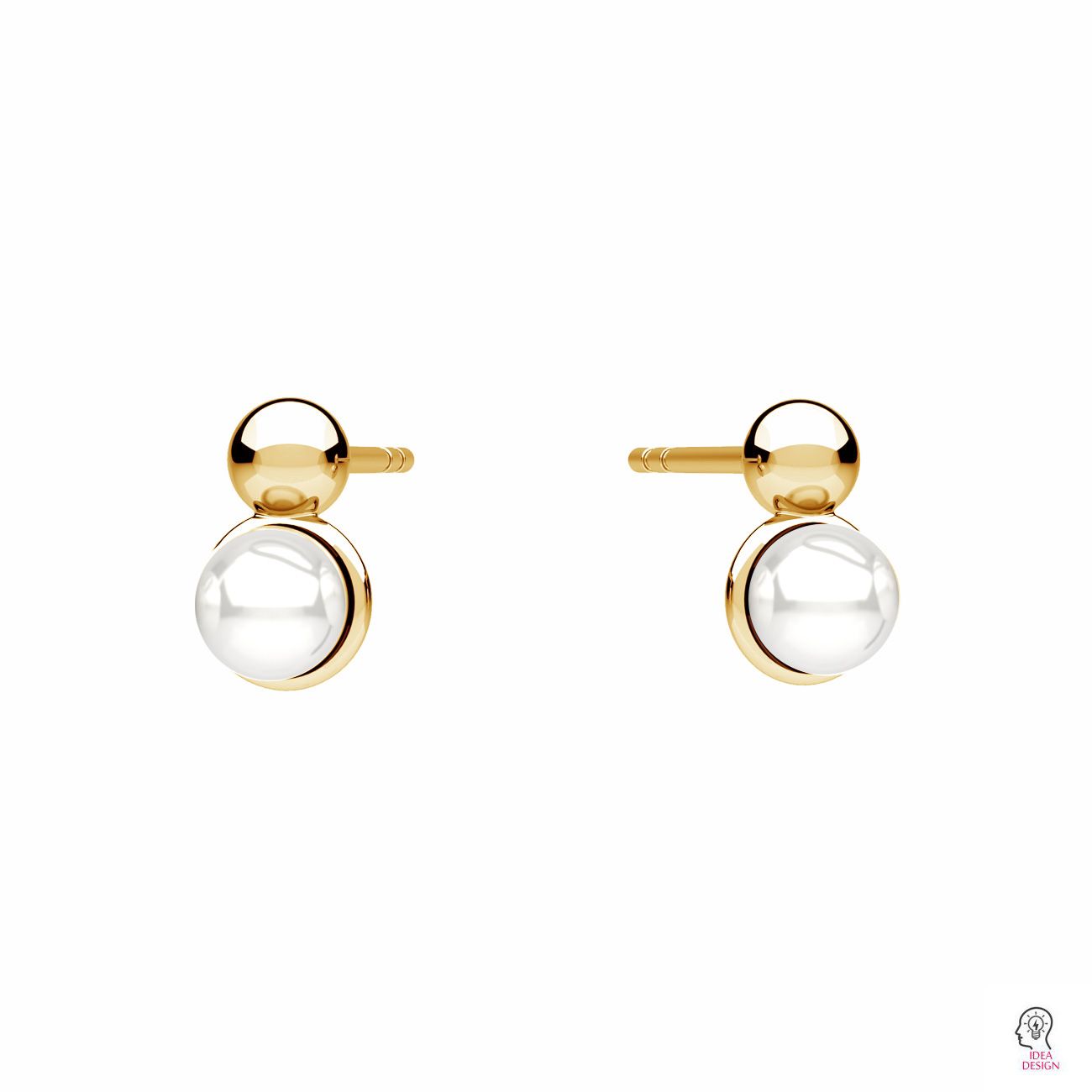 Stud earring - ball, setting for pearls 4 mm, sterling silver AG 925