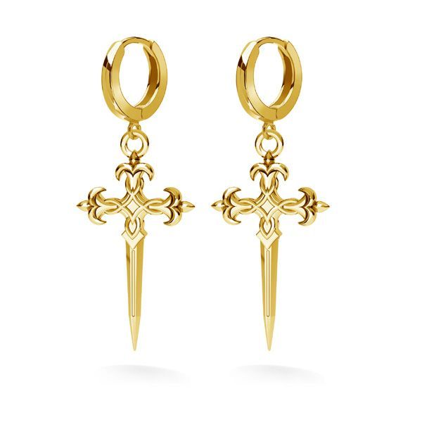 The dagger cross pendant is a bold decorative motif with symbolic character. The brass casting combines the form of a cross, sword and dagger, enhanced with a fleur-de-lis detail. The deep structure highlights the design. Intended mainly for necklaces and earrings.