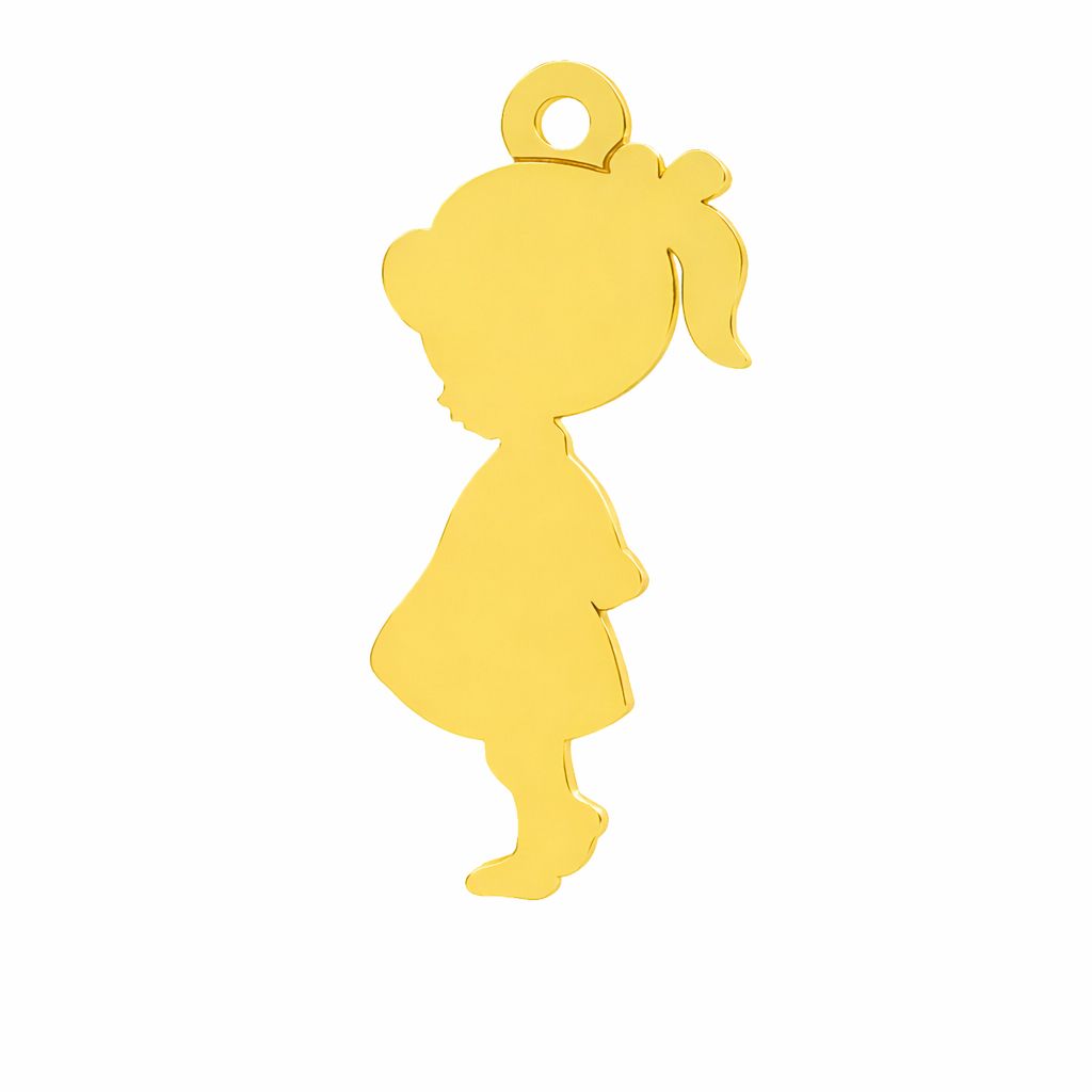 The girl pendant is a delicate jewelry motif in the shape of a child silhouette. Made of brass, it features a smooth surface and a small loop for hanging. Ideal for necklaces, bracelets and jewelry with a symbolic family meaning.