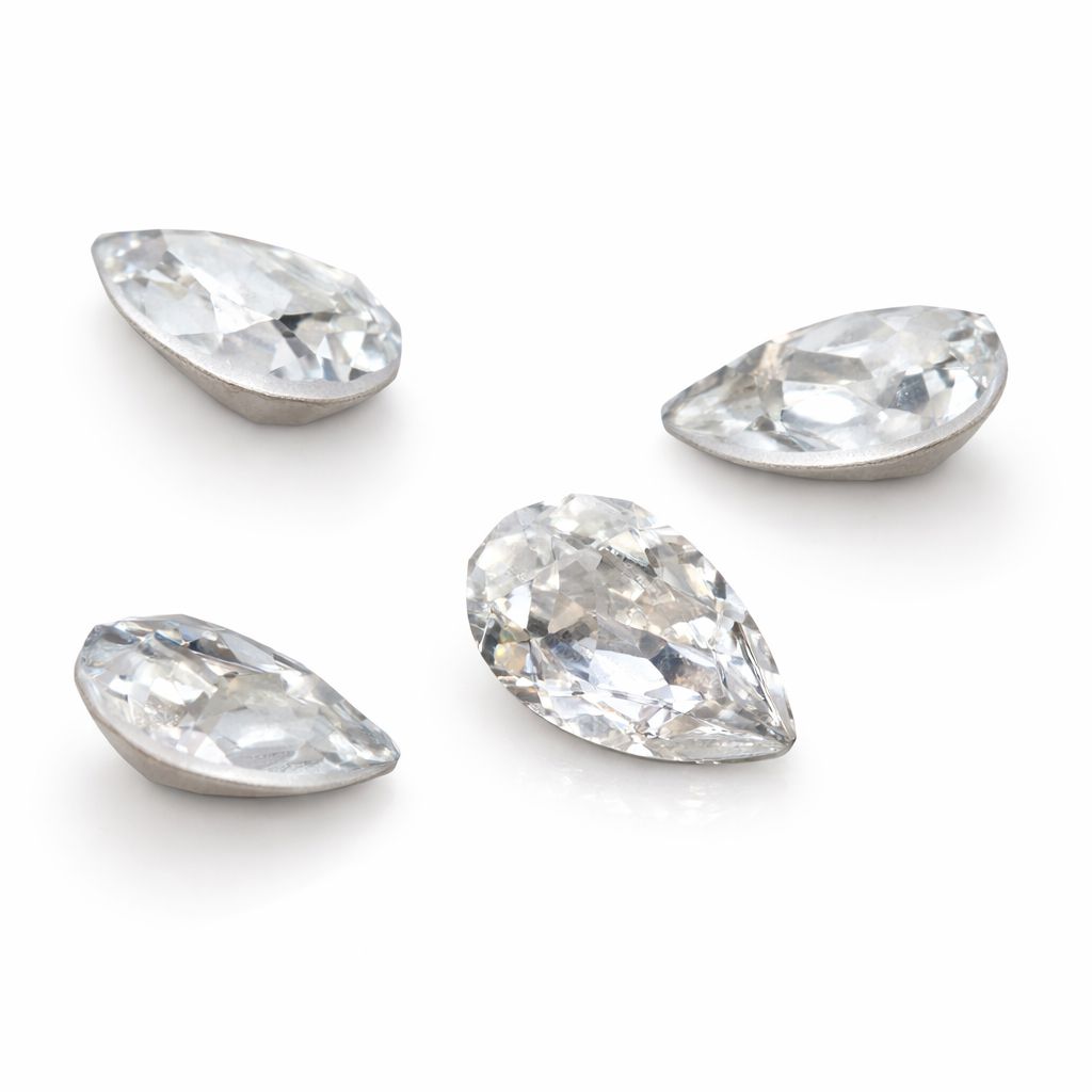 Crystal in a CONE CUT with dimensions of 10x7 mm. Faceted stone with high clarity and strong brilliance. FOILED (F) backing enhances light reflection and sparkle. Designed for professional jewelry settings.